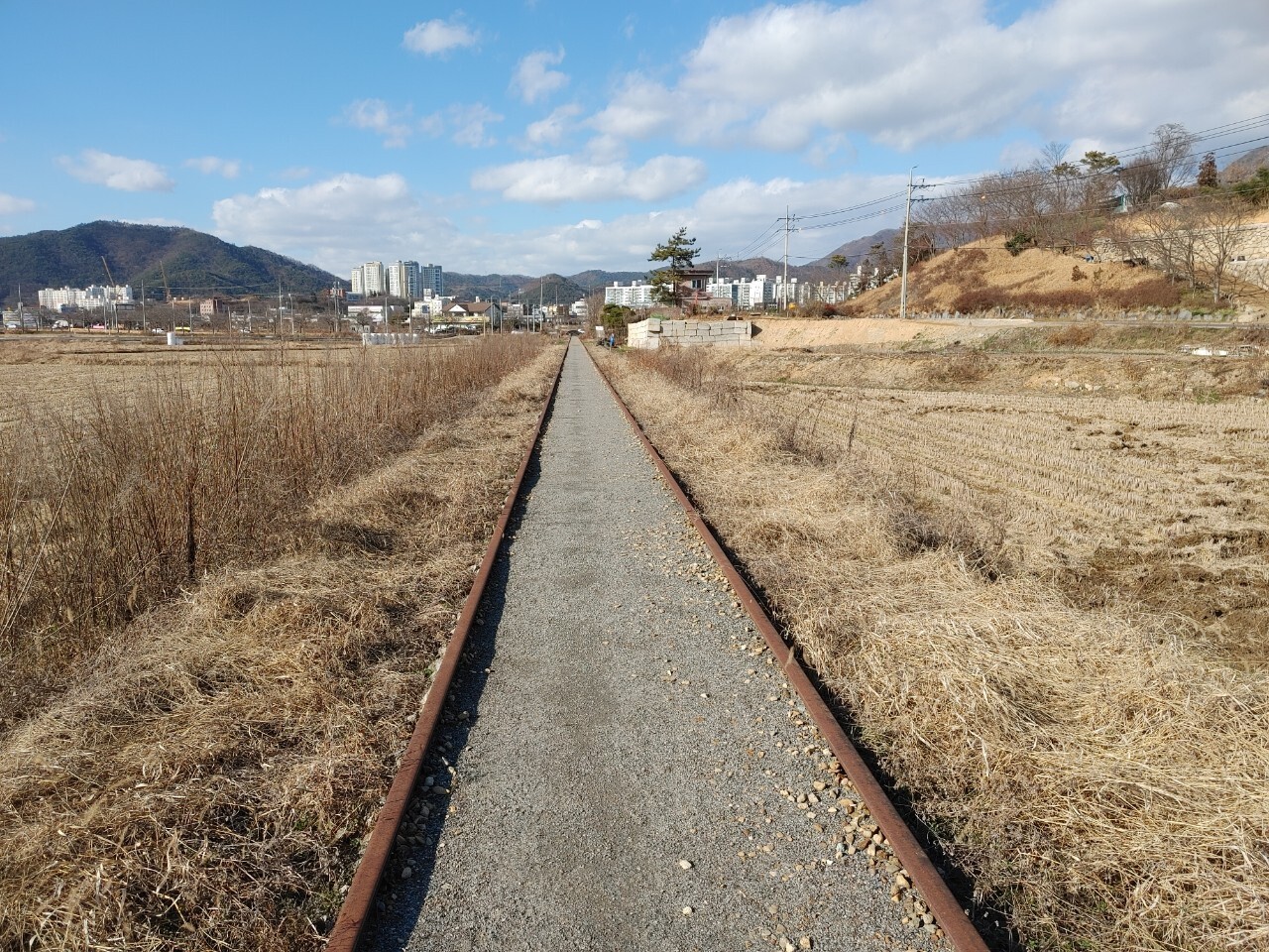 하산후에 집에까지 오는도중에 일부는 철길을 걷습니다...