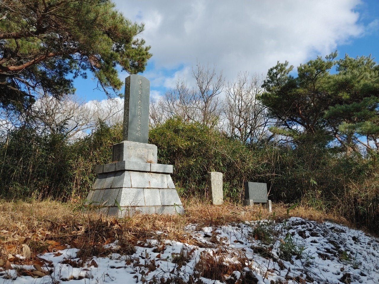정상에는 석물 3개가 있는데...