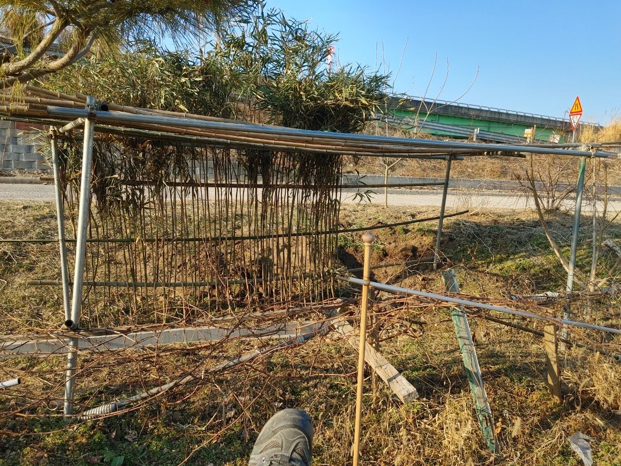 최근 정문쪽에 포도나무 덕장을 만들었는데... 가림막과 포도 덩쿨이 타고 올라가는 길로 사용할려고 합니다...