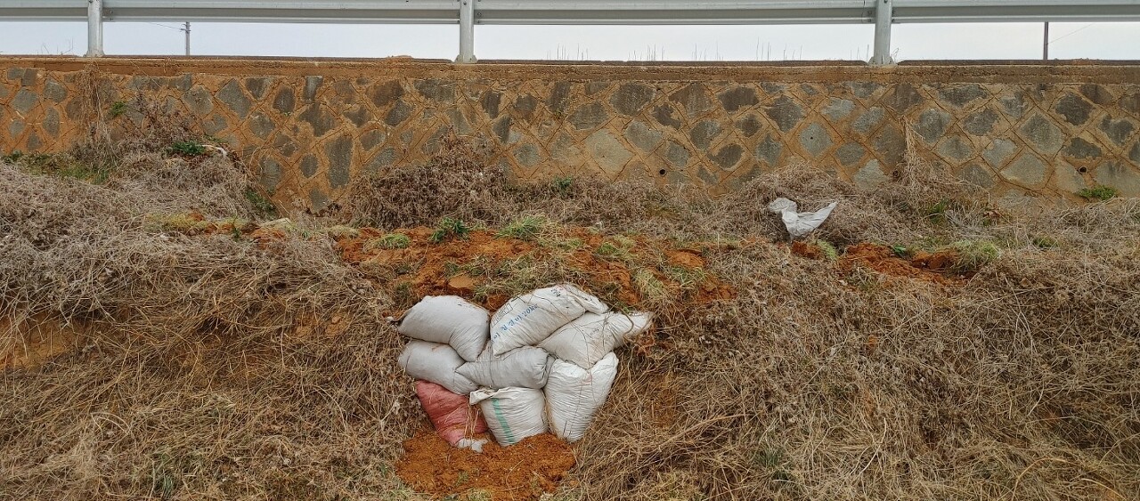 작년부터 조금씩 정리를 시작해서 이번 겨울에는 틈틈이 조금씩 묵은 풀도 베고 배수로도 정비하고 가시덩쿨도 베어서 점차 정비중에 밭둑 3군데쯤이 무너진것이 확인되어 시간날 때마다 밭둑에 말뚝을 박고 포대에 흙을 넣어 차근차근 쌓고는 그위에 흙을 덮어 정리하는 일을 몇번에 걸쳐서 했습니다...