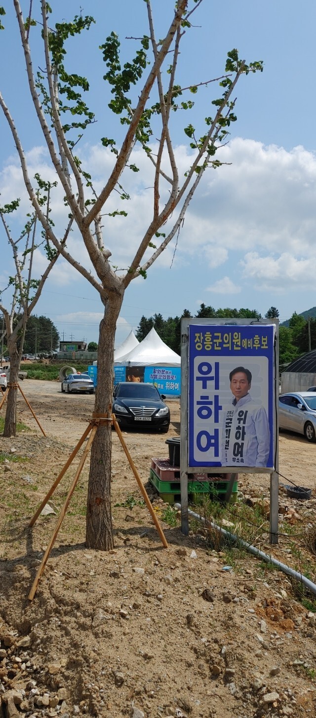 위등 전남도의원 후보 사무실 인근의 위하여 장흥군의원 후보의 독특한 천막 사무실...