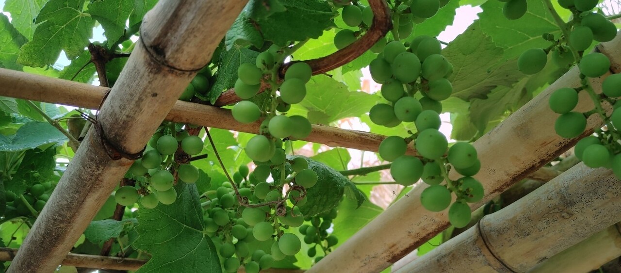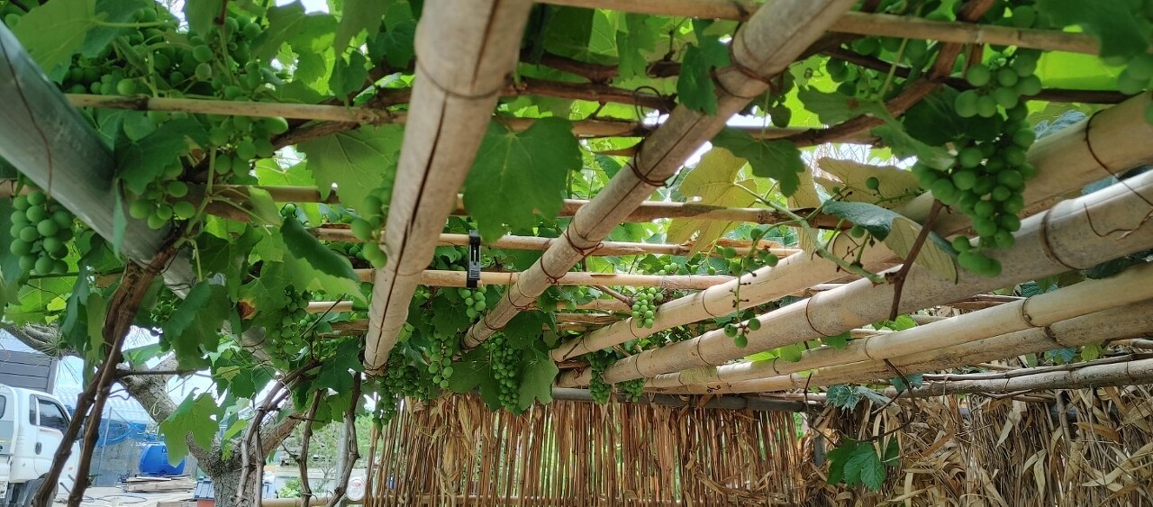 요즘에는 주변 풀도 베어내고 옮긴 포도나무도 풍성해지면서 포도열매도 주렁주렁 열리고 그늘막이 그럴듯 해지고 포도가 익기를 기다리면서 가끔은 그늘막에서 직원들과 점심도 먹고 휴식도 취하고...^^