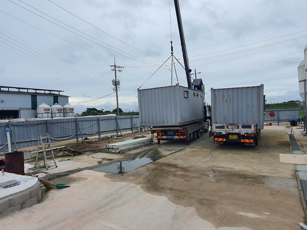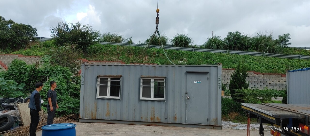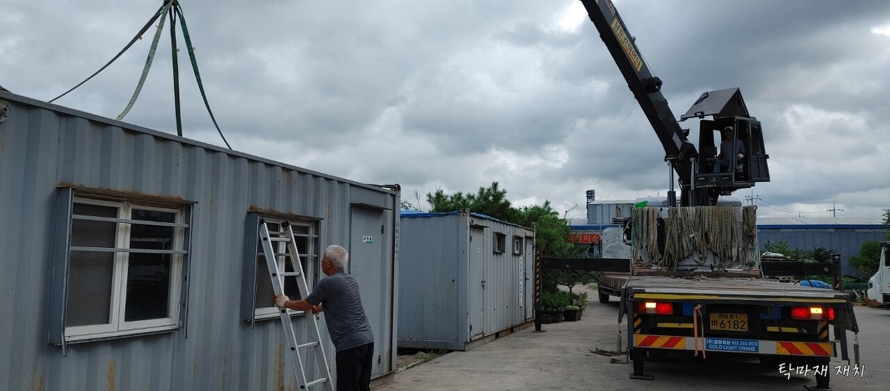 전남 무안군 몽탄면에 있는 농업회사법인 쾌청 육계농장의 기존 축사의 보수 및 축사 신축 그리고 관리사 공사가 거의 마무리 단계입니다... 마지막은 계근대 설치인데... 우선 계근대 설치할 곳에 있던 컨테이너 2동을 철거해서 나주 남평 사무실로 이동 배치했습니다...