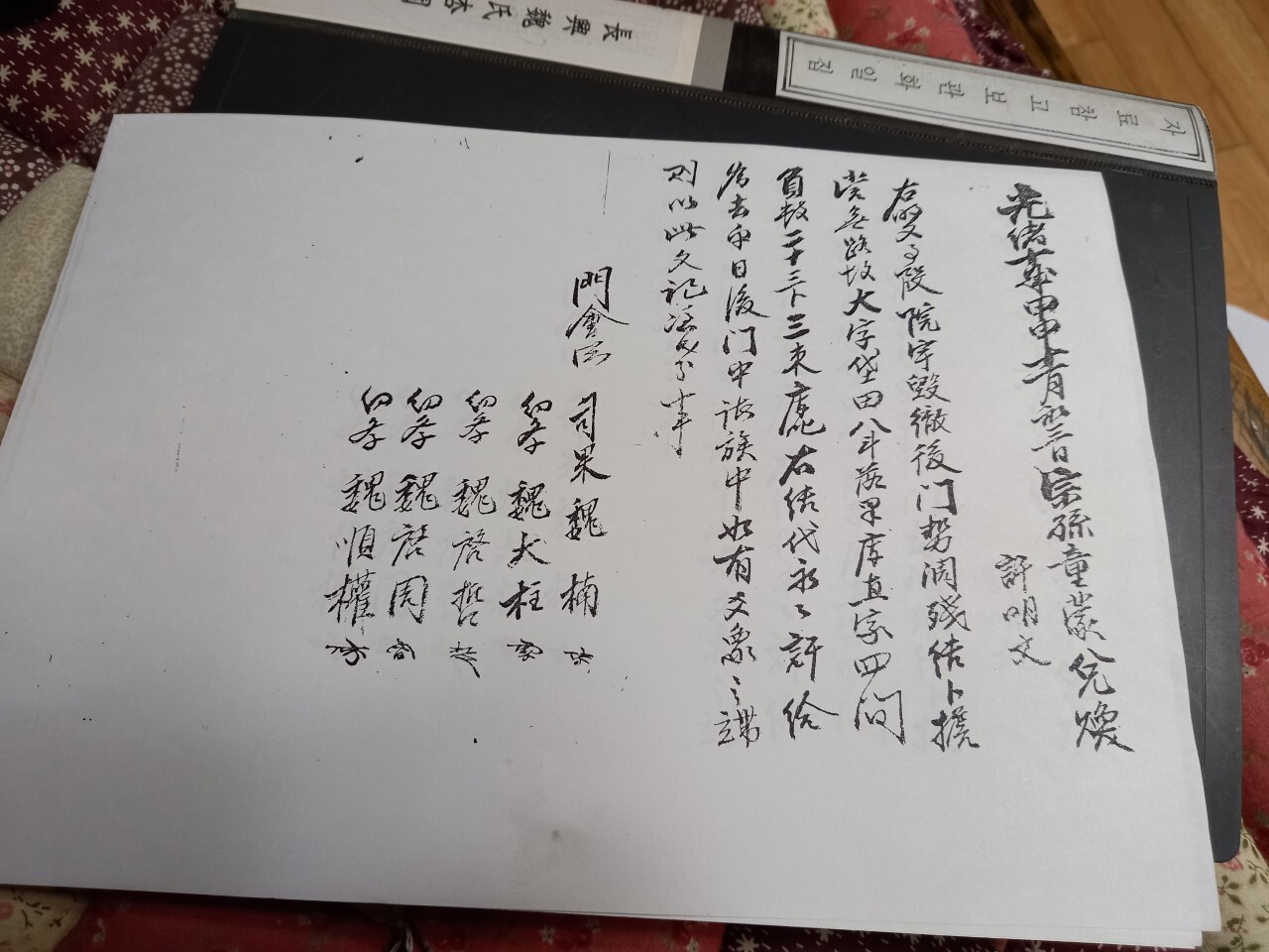 설명 : 1884년에 행원문중 종손 위태환(33세, 당시 15세)에게 행원문중의 대표들이 사원 철폐령과 종손의 사망(휘 석량 32세,1883년 6월24일 임종, 당시 38세)으로 어려움을 겪고 있던 종손 태환에게 토지와 건물의 사용권한을 준것으로 혹시나 종친중에서 시비를 거는 사람이 있을 것을 우려하여 문중의 대표들이 증거로써 명문을 작성하여 어린 종손 태환에게 준 문서임...
