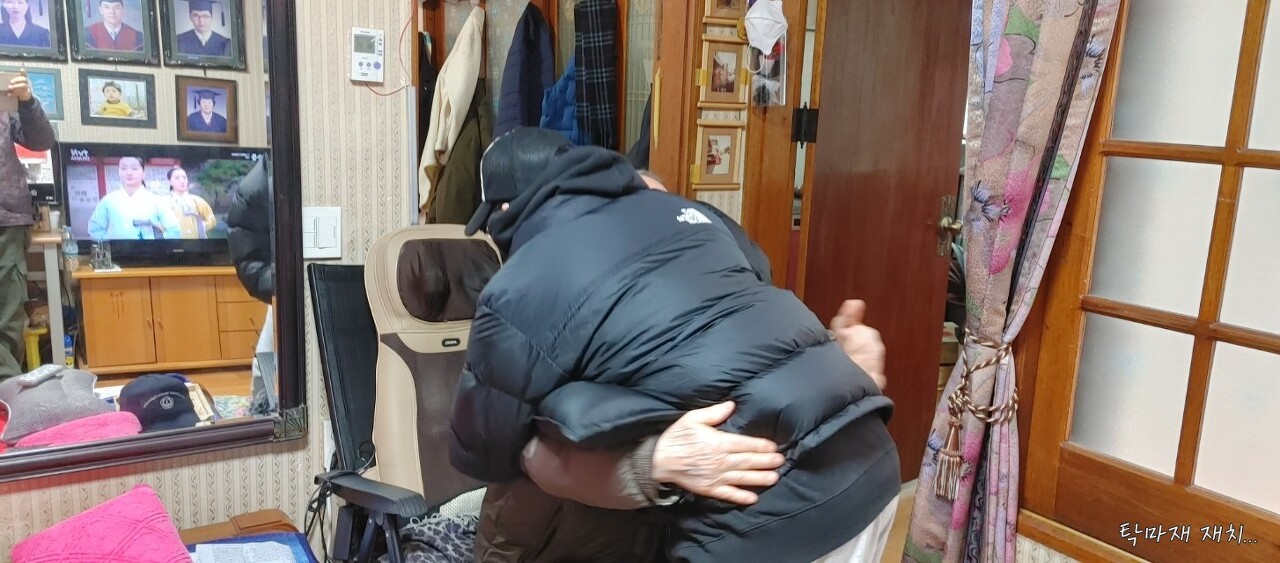 이후에도 먹고 놀다가 다시 나주로 출발직전에 대규가 할아버지와 포옹인사중...
