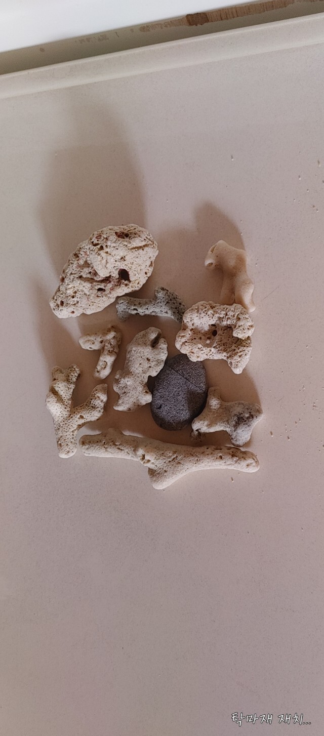 3일동안 조깅할 때에 목적지 해변에서 주운 돌과 산호들...