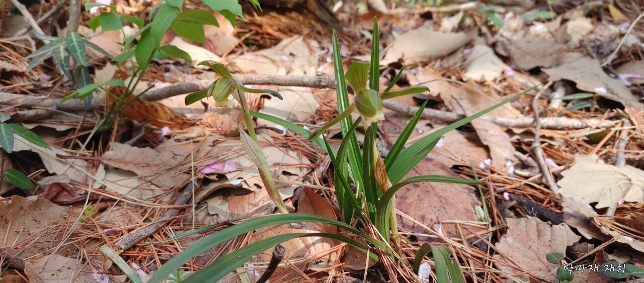 경기장이 될 산과 숲속을 돌아 볼 때에 발견한 춘란이 꽃을 피웠습니다...