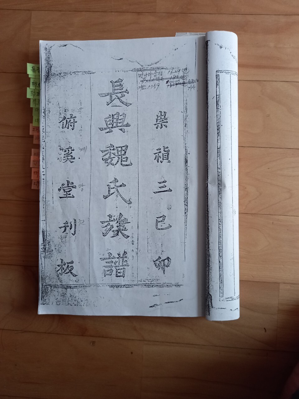 사진설명 : 1759년 장흥 부계당(장천재의 다른 이름)에서 최초로 발행된 장흥위씨족보 기묘초보...