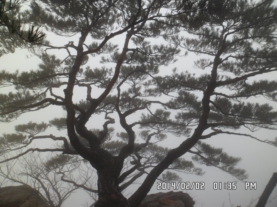위대기장군(1555-1611?)의 이치대첩이 있었고 충남과 전북에 걸쳐있는 대둔산의 서쪽에 있는 안개 낀 곰탕속의 월성봉에서 2014년에 필자가 직접 찍은 멋진 굽은 소나무 사진...
