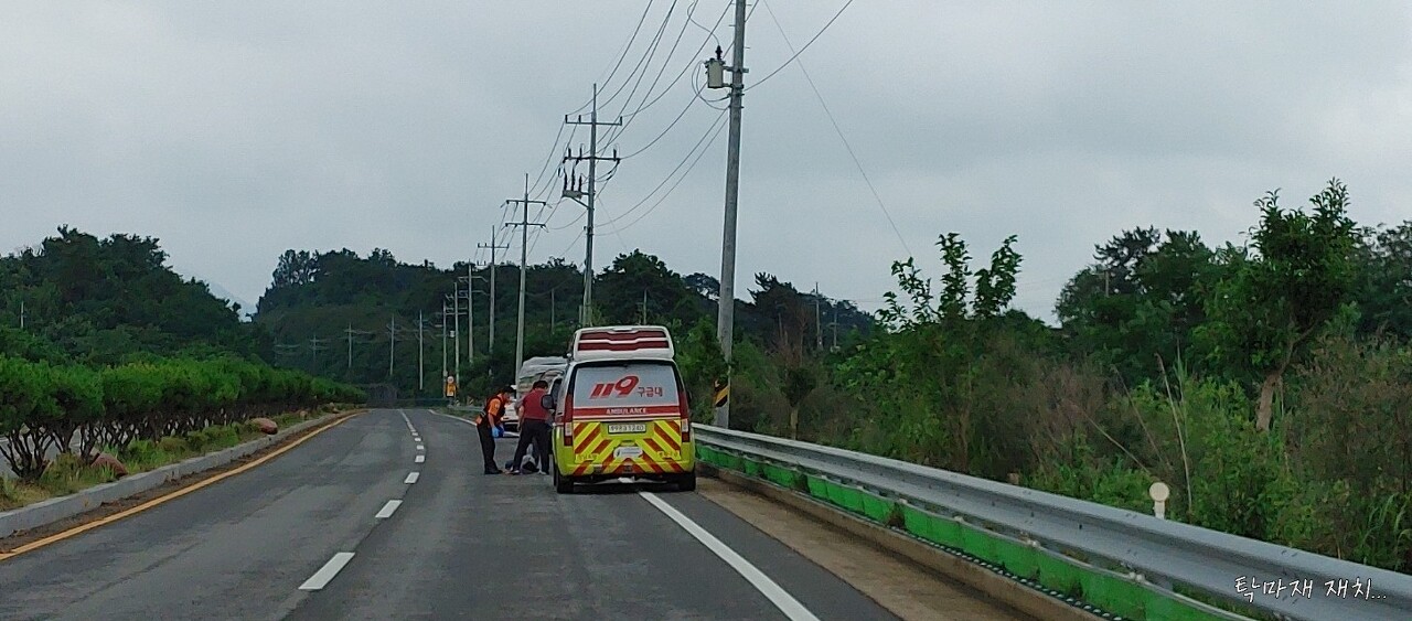 약10~15분후에 119 구급차가 도착하고 이어서 더 큰 119 소방차가 도착해서 저는 차량 유도를 인계하고 다시 바쁘게 해남을 향해서 출발했습니다...