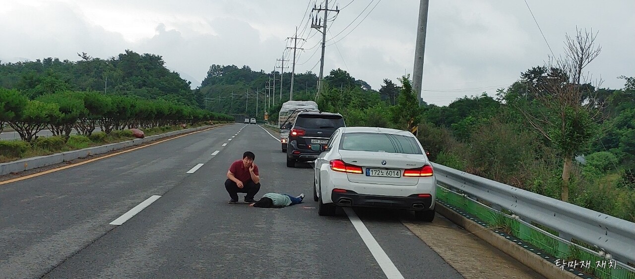 그래서 앞차의 운전자는 여성분에게 말을 걸고 상황을 파악하고 저는 119에 신고하면서 앞으로 나가 고속으로 달려오는 차량들을 1차선으로 유도하기 시작했습니다...119에 신고할 때의 음성파일입니다...