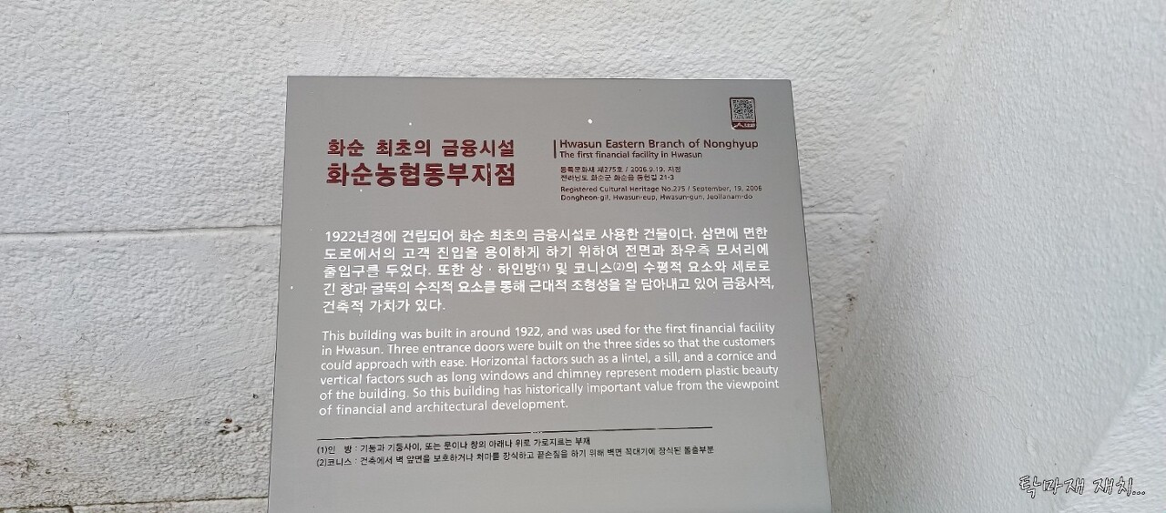 1922년경에 건립된 화순 최초의 금융시설로 현재도 농협지점으로 사용중...