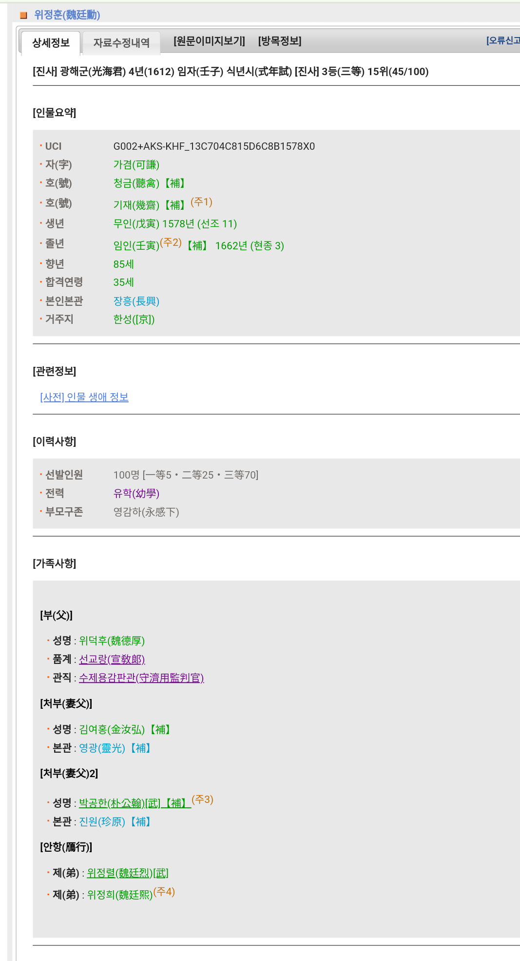 弟는 위정렬(魏廷烈),위정희(魏廷熙).