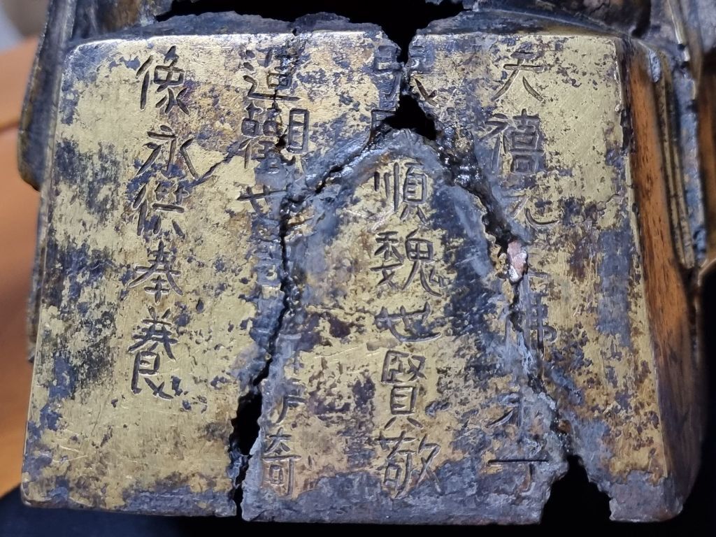 天禧元年佛ㅇ子 張成順 魏世賢 敬造 觀世音菩薩倚像 永供奉養/ 천희 원년(1017년) 장성순과 위세현이 관세음보살 대좌상을 공경되게 조성하여 영구히 받들어 공양하다.라고 기록되어있습니다.