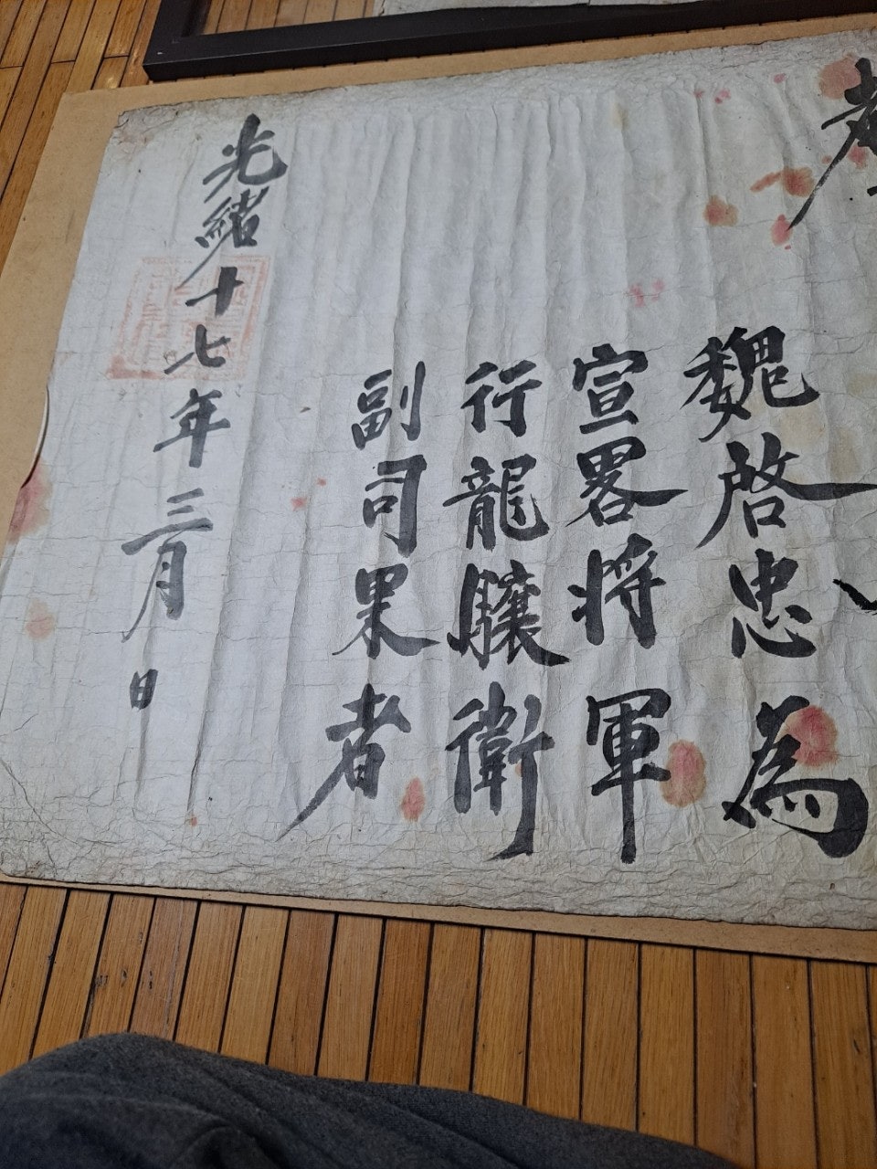 며칠전에 행원에 거주하시는 은암 위기섭(33세 장흥위씨도문회 운영위원) 종친의 제보가 있었습니다... 그동안 행방이 묘연하던 운수공(휘 계충 31세)의 홍패(대과(무과) 합격증서)와 여러장의 교지 소장자를 확인하시고 사진을 받았다고 하시면서 자료를 보내오셨습니다...