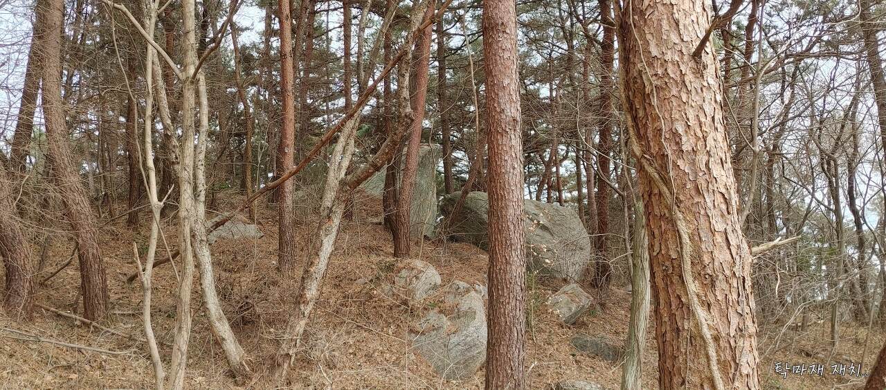 운수공 묘소 아래에서부터 벌목이 되어있습니다...묘소의 동쪽으로 감태바위(감투바위 모자바위)가 보입니다. 행원리 출신이면 누구나 아는 감태바위입니다.