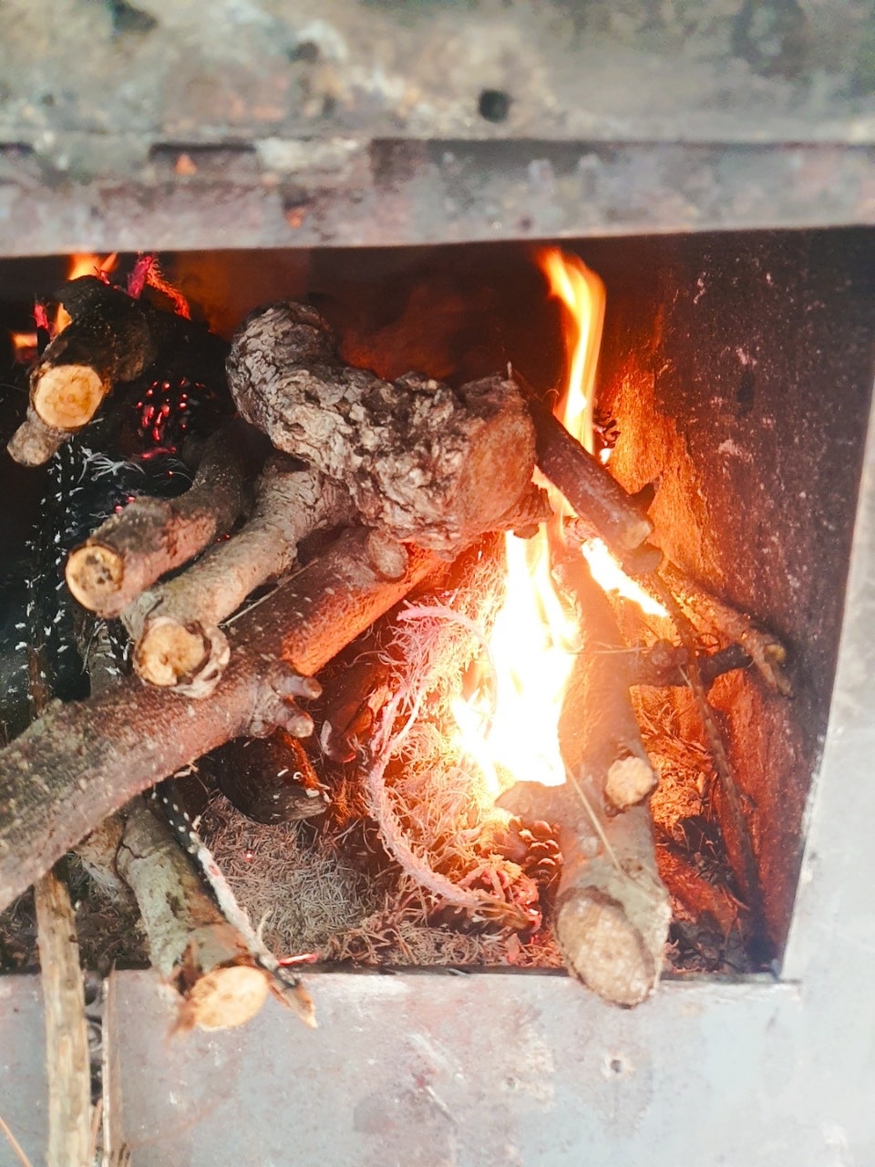 친구 온다고 하니 휴게실에 있는 화목난로에 불도 붙혀놓고...