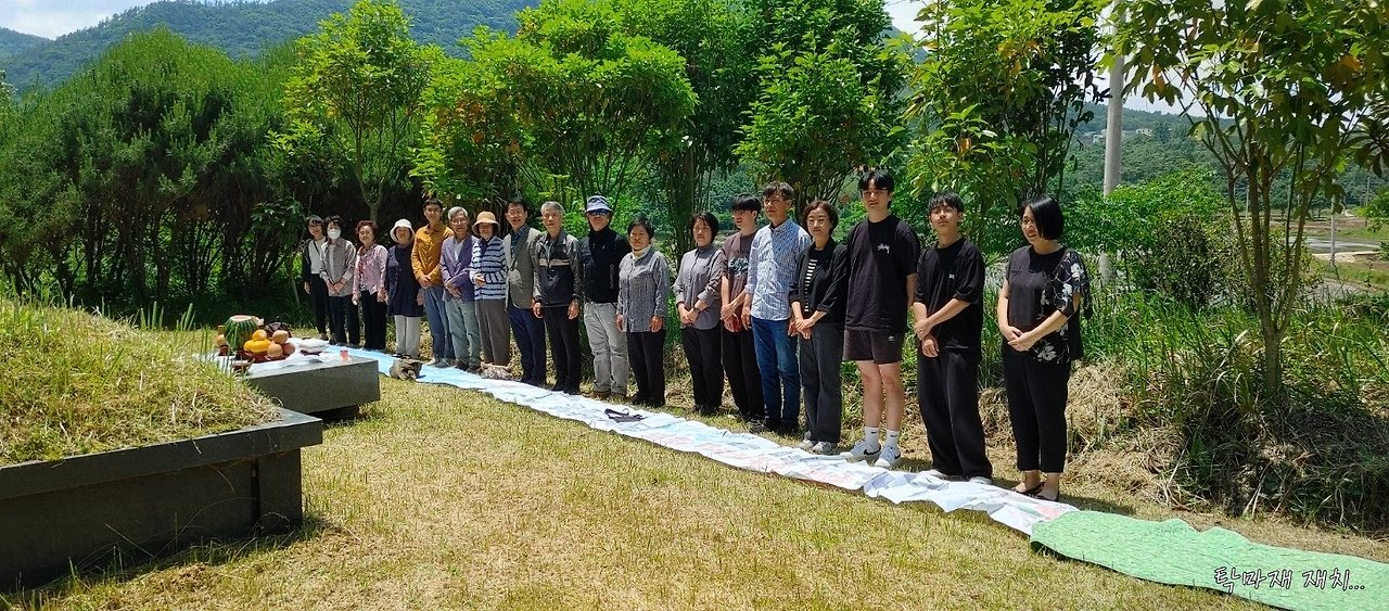 전남 장흥군 안양면 동계마을앞 묘소에서 가족들이 모였습니다...