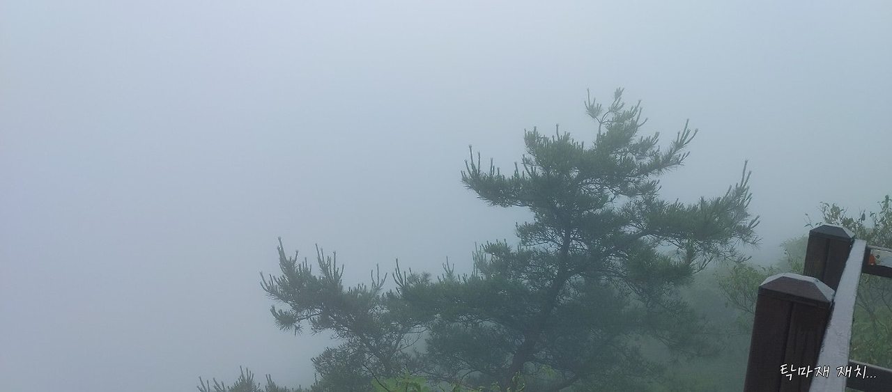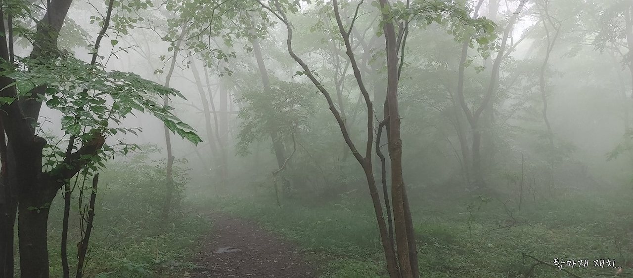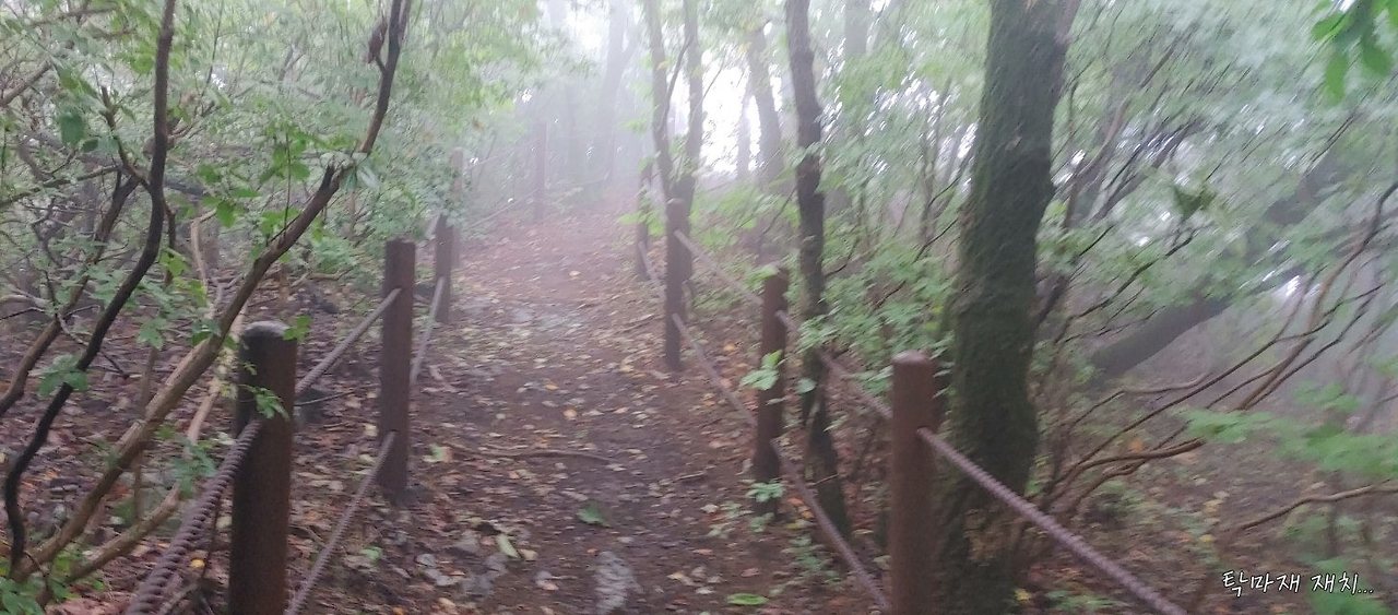 정상에 가까워질 수록 빗방울이 제법 뿌리면서 숲속은 온통 안개속입니다...