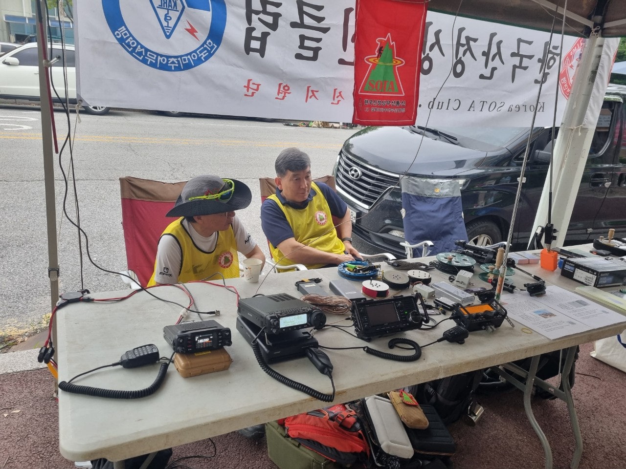 아마추어무선햄 산정상교신클럽에서도 작은 부스를 만들어서 홍보활동중이셨습니다...