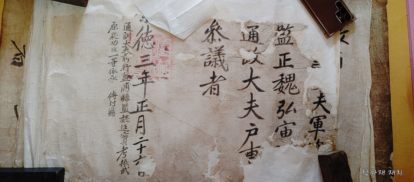 얼마전 장흥군 행원리에서 촬영한 수정당공(22세 휘 홍주 행원문중 괴봉공파)의 추증 교지입니다.
