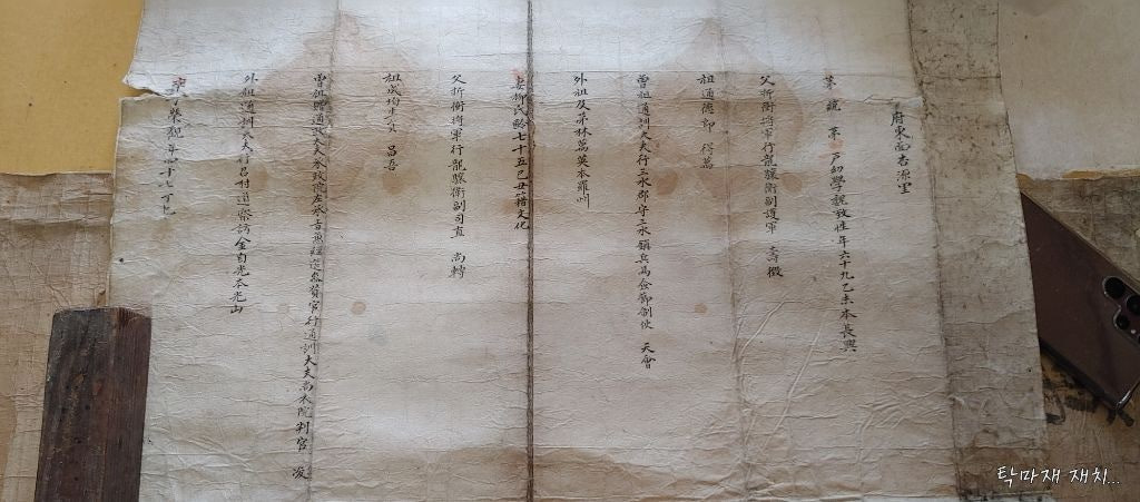 저에게는 8대조 할아버지가 되시는 삼락와공(또는 낙와공)의 호구단자로 현재 행원에 있습니다.