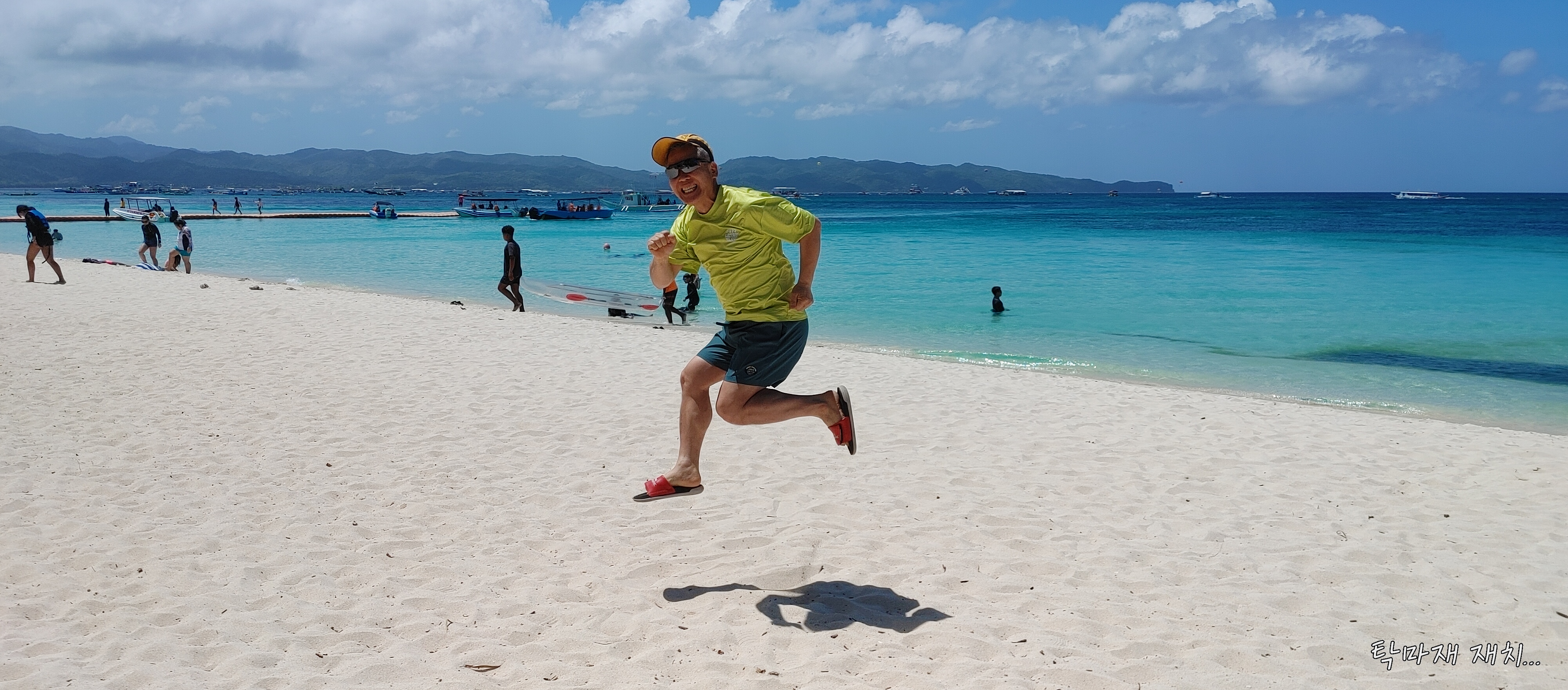 화이트 비치의 뜨거운 뙤약볕에서 '신행태보' 놀이 한다고 몇번 점프질 했더니만 숨이 찹니다...