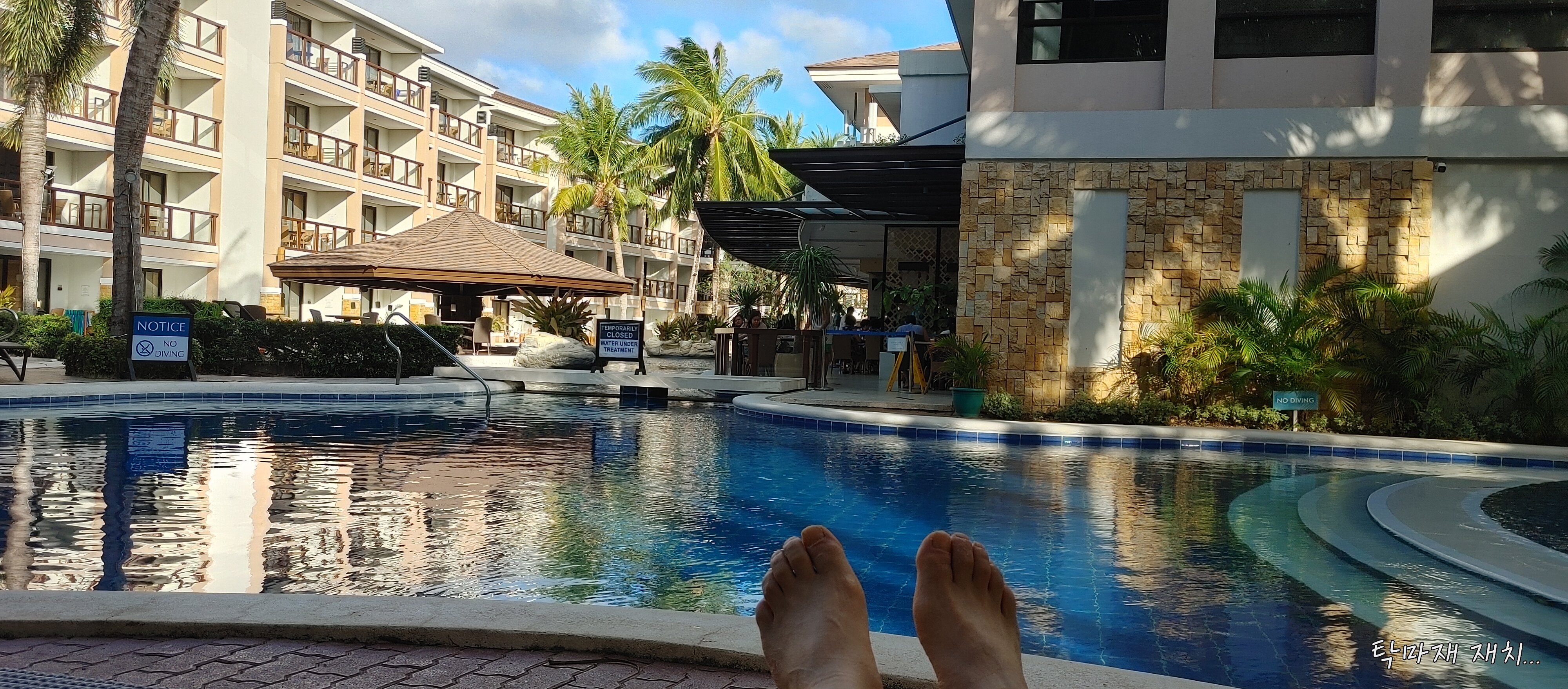 그리고는 리조트 풀장의 썬배드에 누워서 위에 있는 동영상을 간단하게 편집하고 땀으로 범벅된 몸을 위해 휴식을 취했습니다...