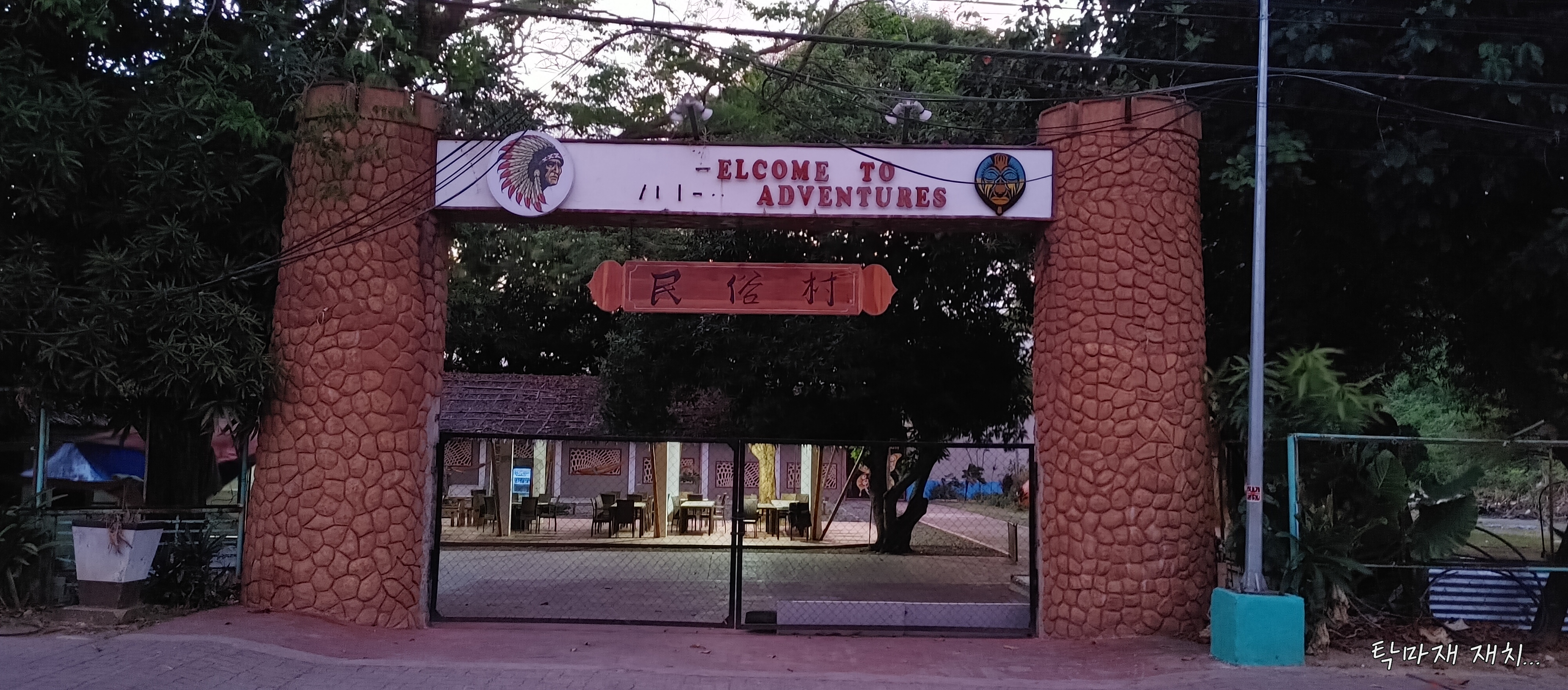 미속촌이라고 한문 간판이 보이는데...