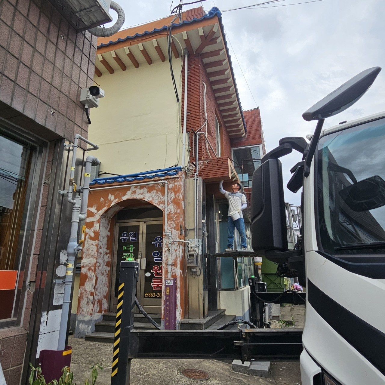 장흥집 건물 외벽에 페인트를 칠하는 도색작업을 했습니다...