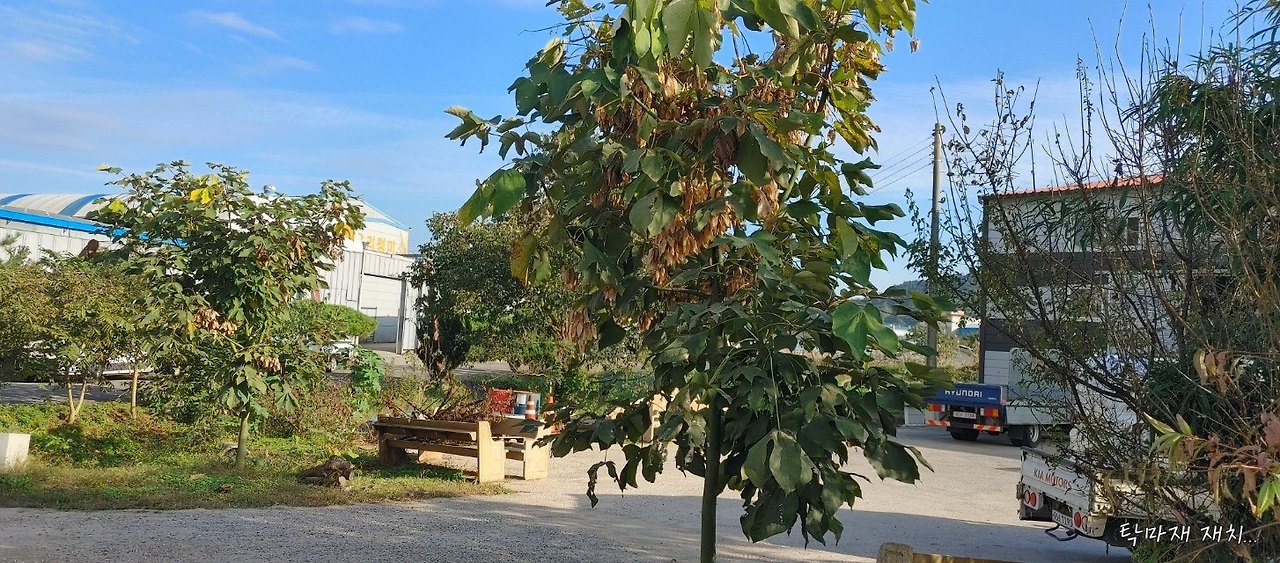 2020년 12월에 오래전부터 눈여겨 봐 둔 어린 벽오동나무 3그루를 전남 함평의 한도로변에서 채취해서 나주 사무실에 심었었죠...