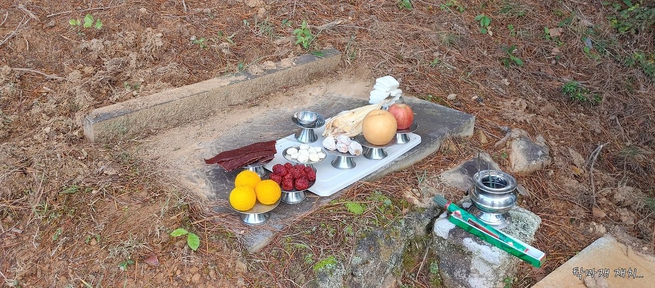 한쪽에서는 검소하지만 정상스레 준비한 제물을 준비하고 있습니다...