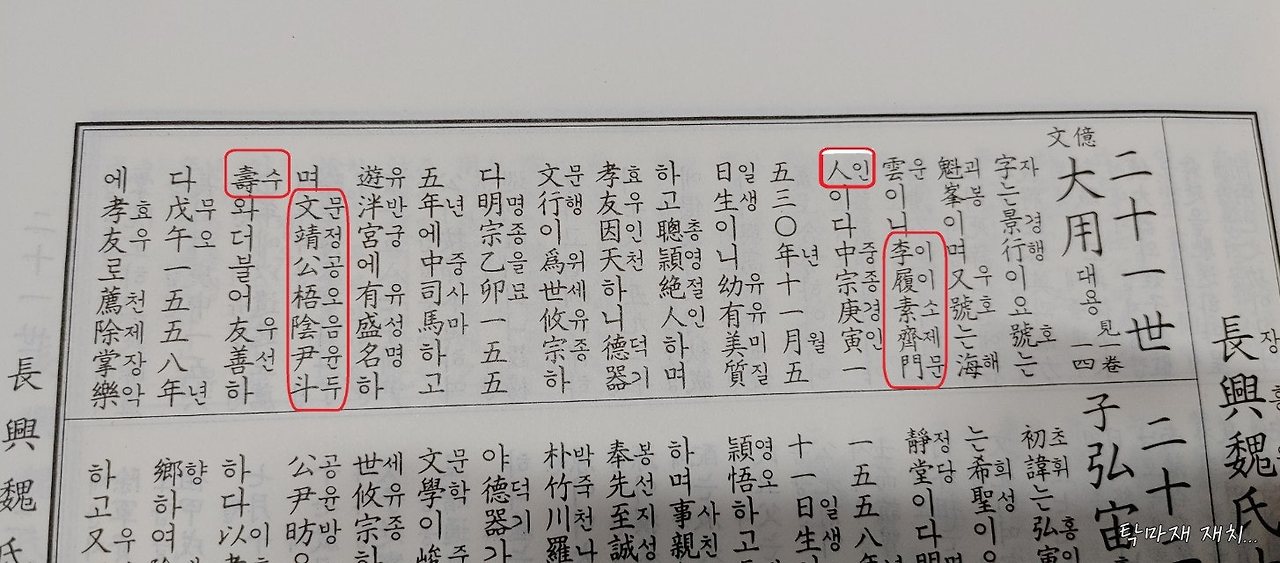 특히 후손들도 혼동하는 매우 심각한 상황입니다... 광산이씨 족보(아래 사진)에는 이중호의 자(字)가 '풍후(風后)'로 되어있습니다... '풍후'는 전주이씨 이중호의 자(字)로 광산이씨 이중호의 자(字)는사문(士文)입니다 ... 전주이씨 족보는 확인하지 못했습니다...