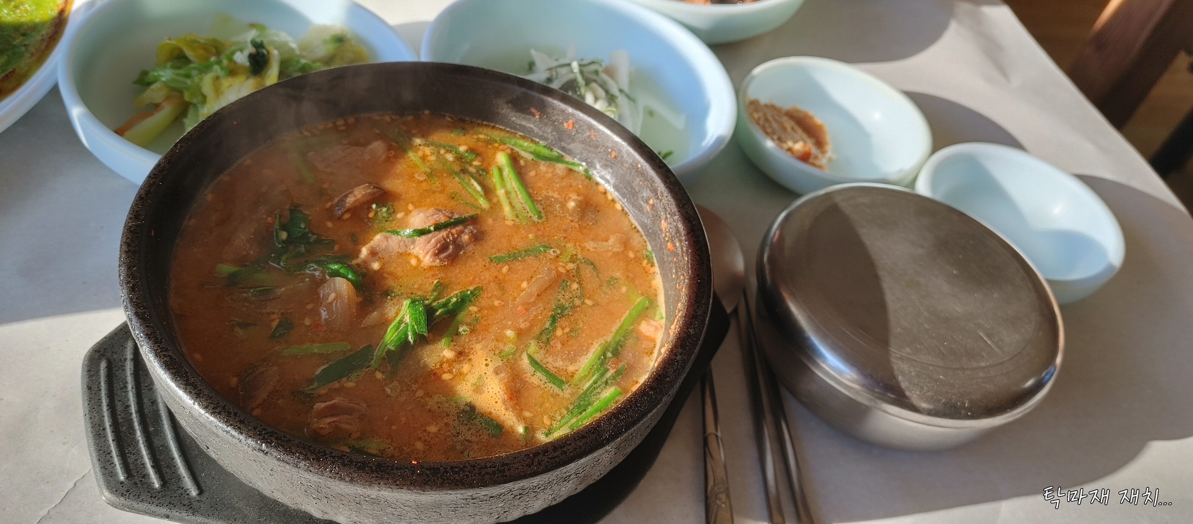 너와나목장코스로 하산해서 다시 중지마을을 거쳐 들국화마을까지 잰걸음으로 도착...이어서 큰재목장가든에서 뜨근한 양탕(염소탕)으로 얼은 속을 풉니다...