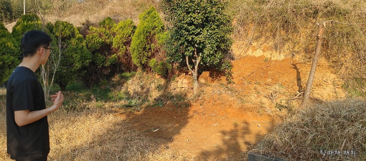 산소 뒷편의 경사지가 무너져 내려서 무너진 흙을 정리해야 했습니다...