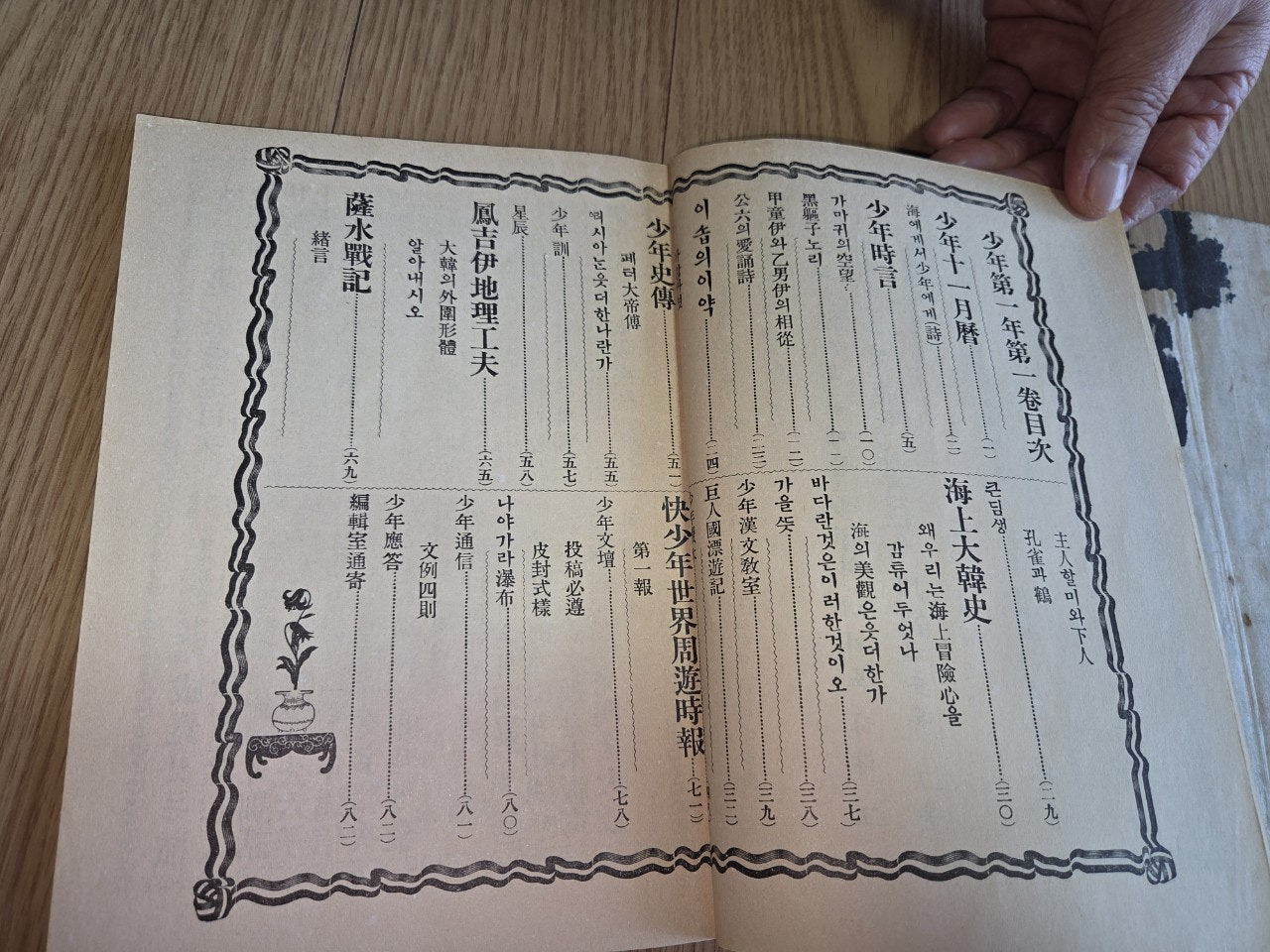'소년' 창간호를 보자 우선 너무 깨끗하고 인쇄 상태도 좋아서 창간호가 맞나라는 생각이 들정도 였습니다... 우선 창간호인지 아니면 그동안 몇번 발행이 된 영인본(복제본)인지는 알 수 없었으나 오래된 '소년'창간호를 볼 수 있었습니다...