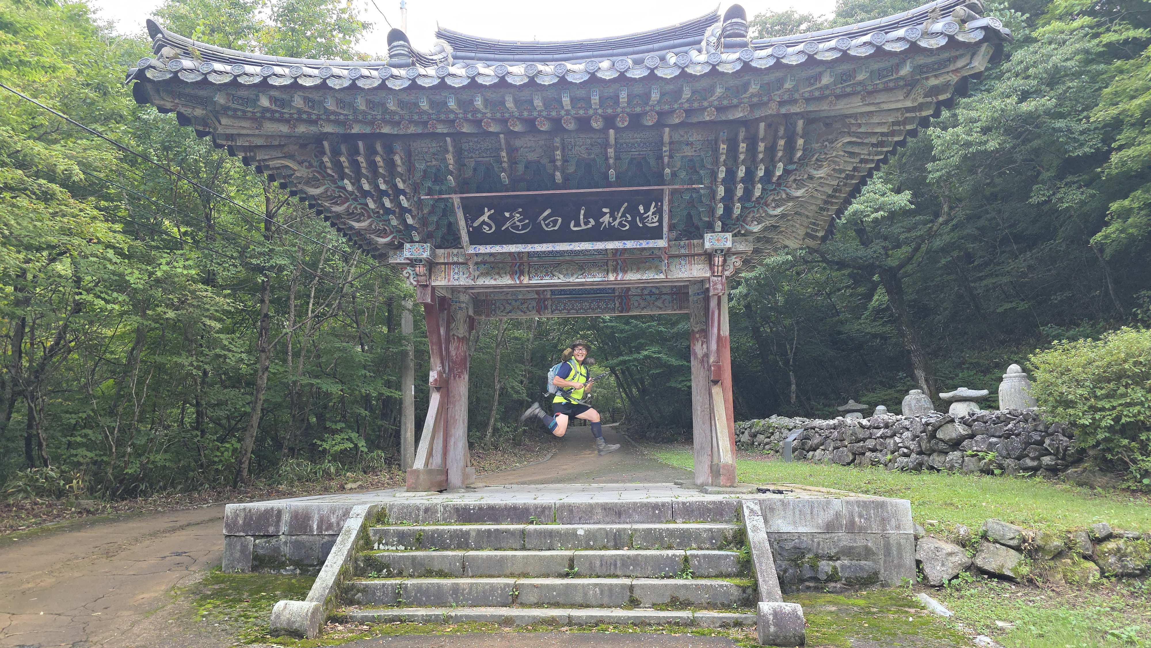 백련사 일주문에서 의례처럼 하는 점프샷을 남기고 서둘러서 나머지 6.5km를 초고속으로 걸어서 구천동주차장으로 향하면서 시나브로 주변은 어두워져버립니다...