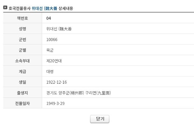 혹시라도 28세의 나이에 전사한 20연대장 위대선 대령에 대한 정보나 자료가 있으신 분은 연락바랍니다...