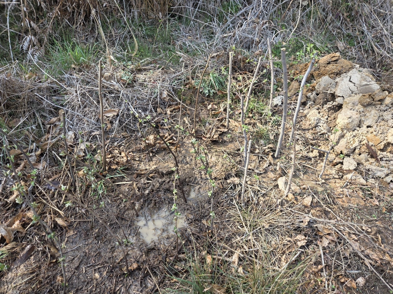 아는분이 준 모과나무 묘목 6그루와 왕보리수(왕포리똥)나무 삽목을 대충 꼽아두었습니다...