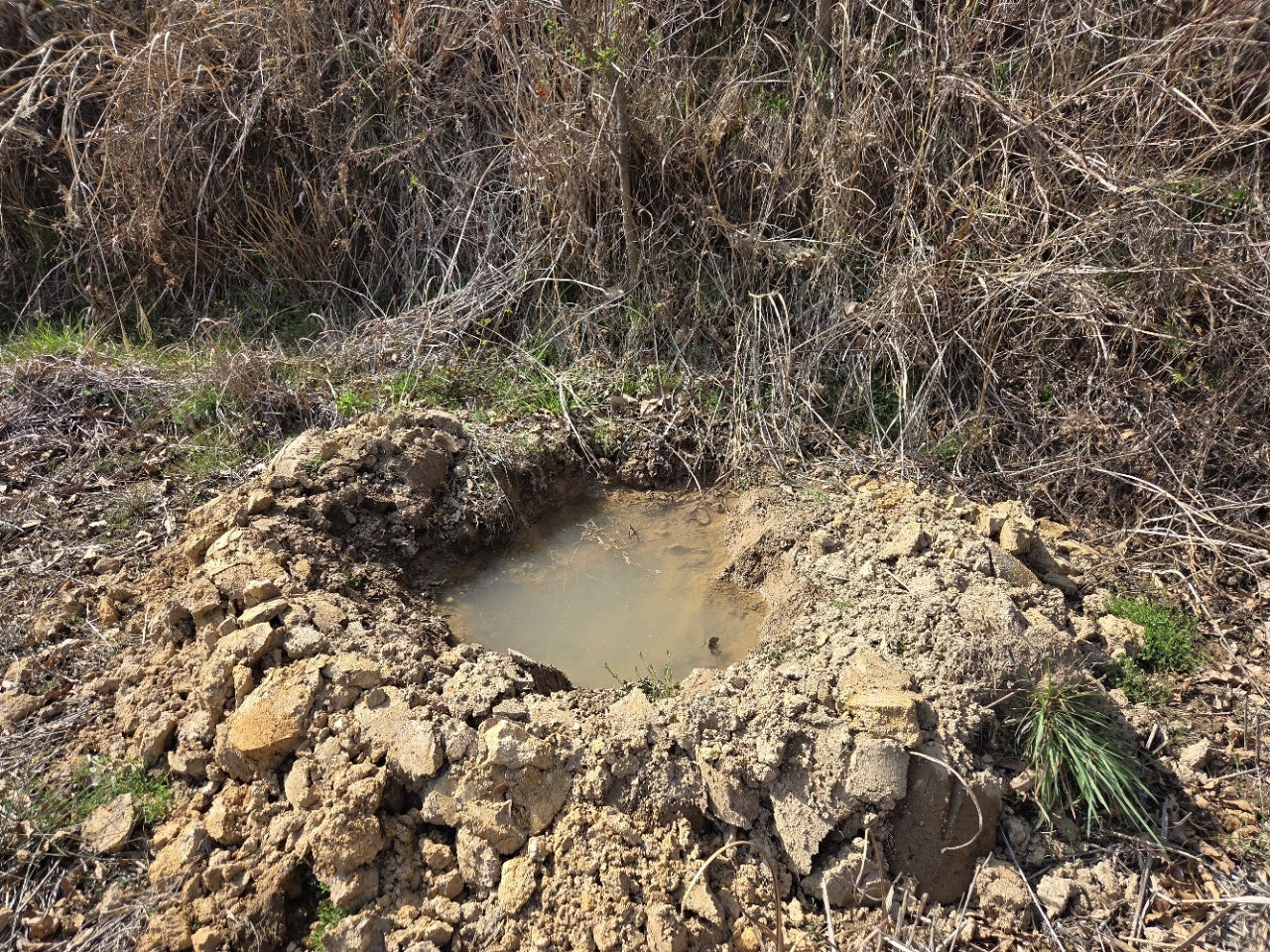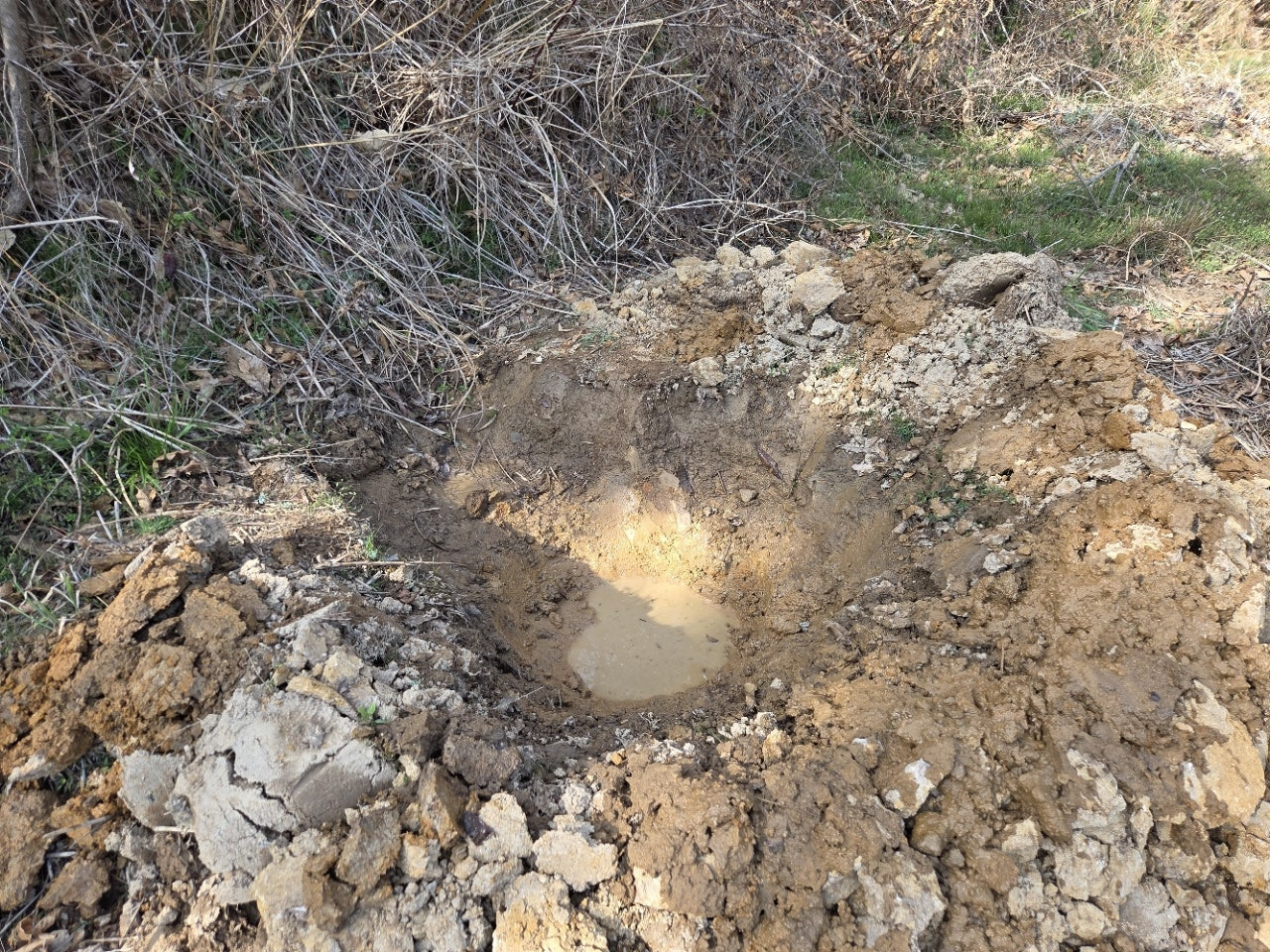 시골밭에 나무를 심을려고 약간 축축한 땅에 둠벙을 작게 팠습니다...땅은 마사토라 깊이 파지지는 않습니다... 일주일전에 파 둔 둠벙에 물이 고여 있습니다...브라보~~~